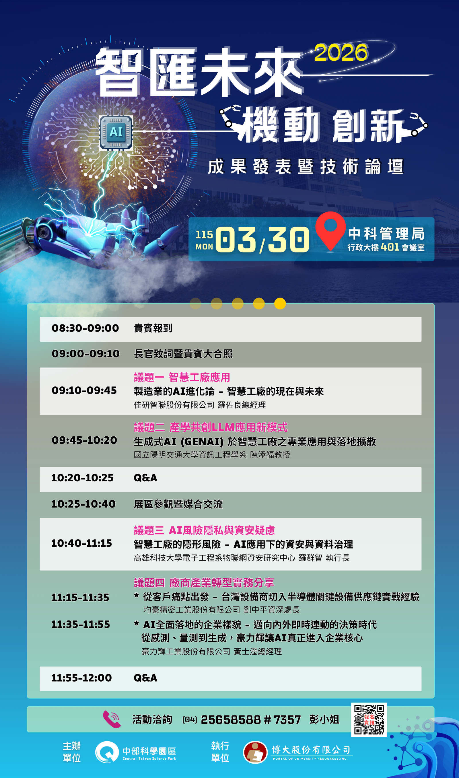 【活動轉知】115年3月30日(一)09:00「2026智匯未來・機動創新」成果發表暨技術論壇 /