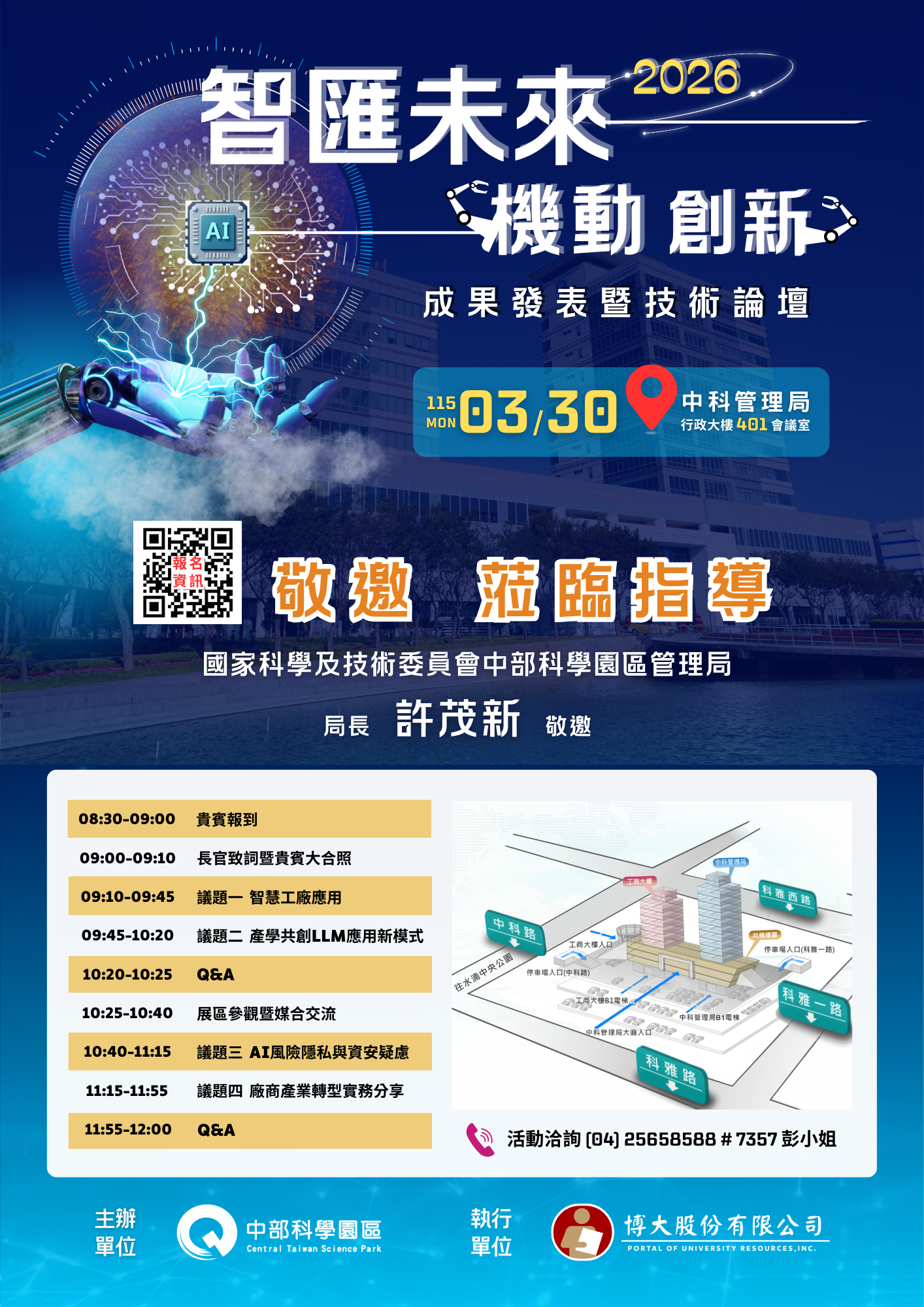 【活動轉知】115年3月30日(一)09:00「2026智匯未來・機動創新」成果發表暨技術論壇
