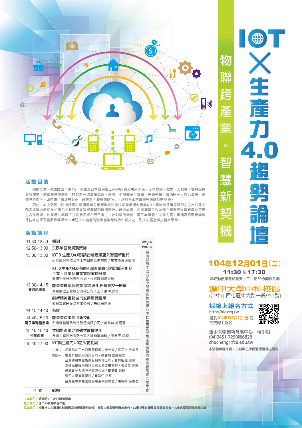標題:【活動訊息】IOT X 生產力4.0趨勢論壇
