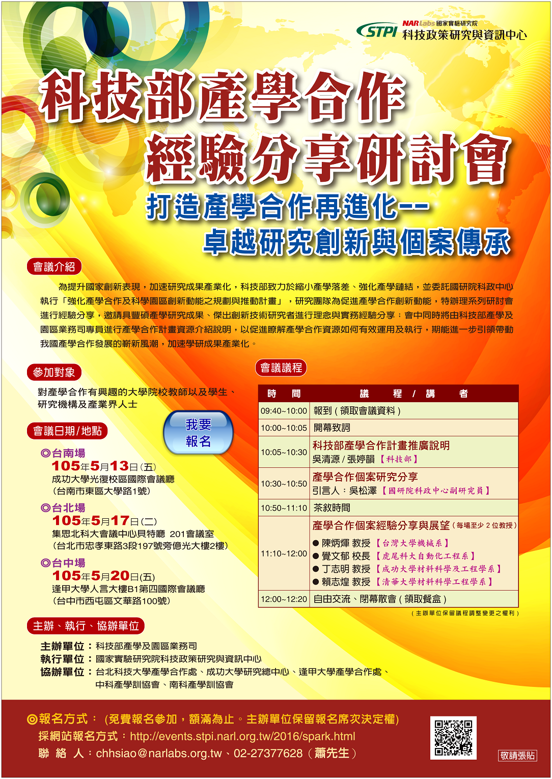 標題:【活動訊息】科技部產學合作個案經驗分享研討會(105年5月20日)